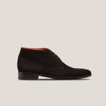 De Prague chukka boot, handgemaakt in Italië van premium kalfssuède, onderscheidt zich door zijn rijke donkerbruine tint. Het tijdloze ontwerp combineert moeiteloos casual en verfijnde stijl, perfect voor zowel een dag in de stad als sociale gelegenheden.